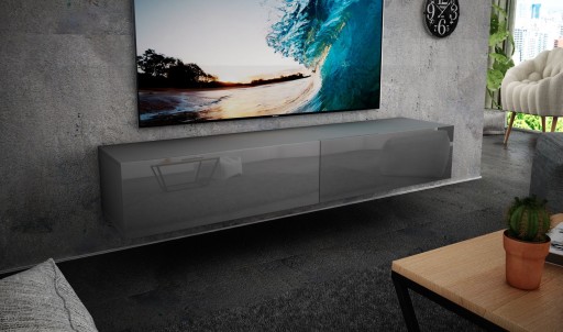 ПОДВЕСНОЙ ШКАФ ПОД ТЕЛЕВИЗОР 200 СМ, СЕРЫЙ ГЛЯНЦЕВЫЙ