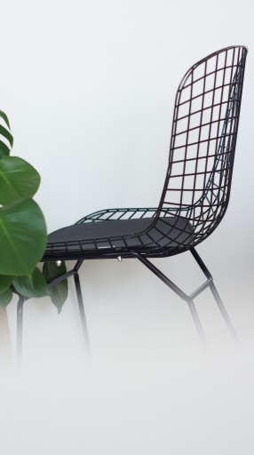 Krzesło wyróżnia się ażurową konstrukcją na siedzisku jak i na oparciu. Siedzisko wyposażone zostało w poduszkę tapicerowaną ekoskórą (poduszkę można zdjąć). Model ten sprawdzi się zarówno wewnątrz pomieszczeń oraz na balkonie, tarasie i w ogrodzie.