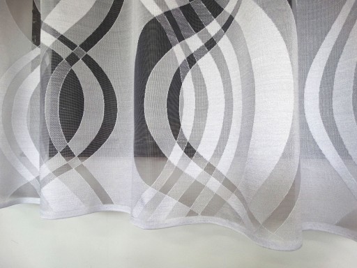 firana żakardowa z pasowym wzorem, wykonana z wysokiej jakości przędzy nabłyszczanej