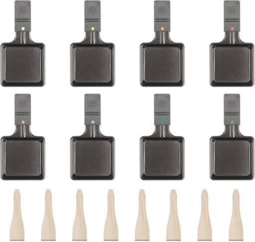 W zestawie 8 małych patelni, 8 drewnianych szpatułek
