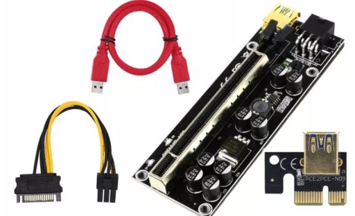 RISER w wersji 009S, PCI-E 1x-16x USB SATA MINING KRYPTOWALUTY BITCOIN ETHERUM MONERO STABILNY HASHRATE PRZEJŚCIÓWKA SATA NA 6PIN GRATIS!