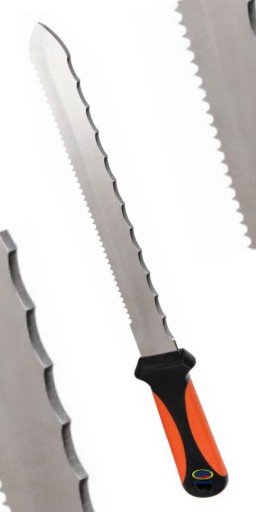 Nóż do wełny i styropianu z ostrzem ze stali nierdzewnej o długości 280 mm.