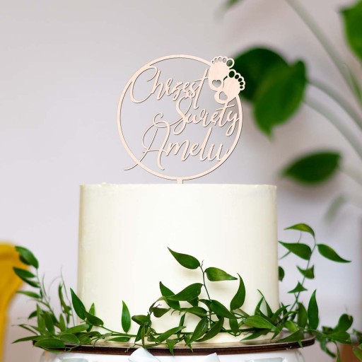 W formularzu zamówienia prosimy o podanie w odmienionej formie imienia, które mają być umieszczone na topperze, np. Chrzest Święty Tomasza.