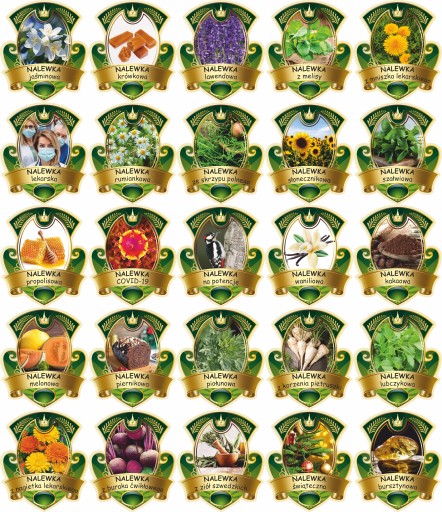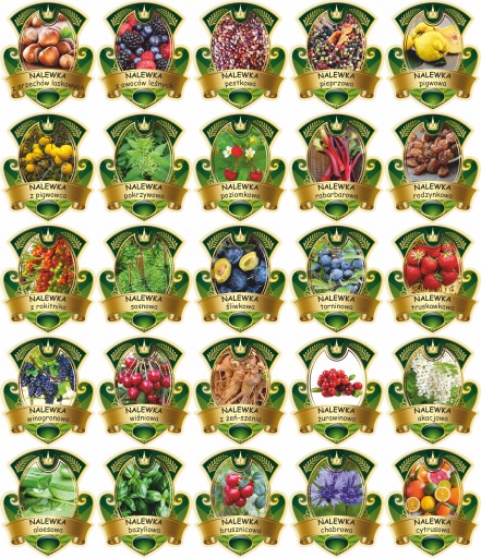 Etykiety na nalewki różne wzory i smaki 30 szt