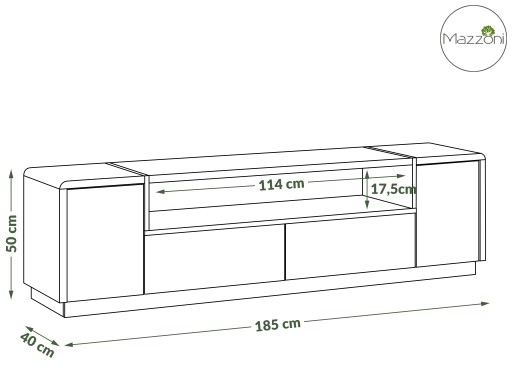 - półka na sprzęt: 114 x 17,5 cm