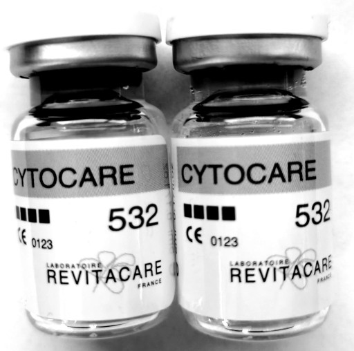 Gama CytoCare® 502/516/532 to ekskluzywne koktajle do mezoterapii francuskiego Laboratorium RevitaCare® dające efekty odmłodzenia i wygładzenia skóry. Wyjątkowa skuteczność tkwi w składzie, oprócz zawartości kwasu hialuronowego w skład CytoCare wchodzi 55 aktywnych składników w tym witaminy, sole nieorganiczne i aminokwasy. Dzięki CytoCare biologiczny kapitał skóry jest zachowany, a efekty starzenia zatrzymane. Intensywne nawodnienie i regeneracja skóry, jej widocznie lepsza kondycja, to tylko niektóre korzyści wynikające z zastosowania CytoCare. Synergiczne działanie witamin, aminokwasów i minerałów z kwasem hialuronowym przyspiesza regenerację komórkową.