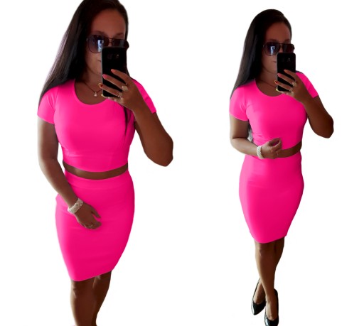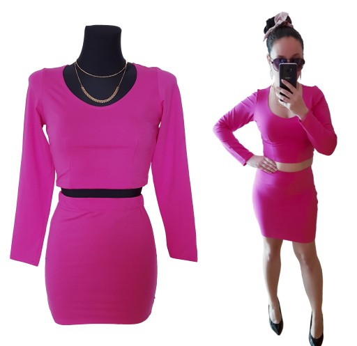 Spódniczki midi ołówkowej + krótkiego topu z długim rękawem.