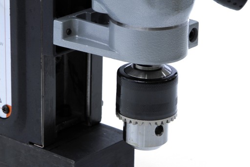 Wiertarka została uziemiona, a jej siła podstawy magnetycznej wynosi 13000 N. Po wyjęciu z walizki urządzenie jest praktycznie gotowe do użycia wystarczy tylko założyć narzędzie wiercące.