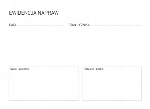 Następnych 12 stron to miejsce na prowadzenie szczegółowej ewidencji napraw, do której można dołączać rachunki, faktury.