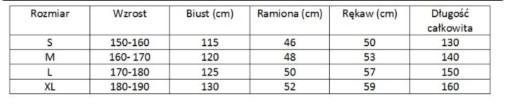 Rozmiary opisane w tabeli
