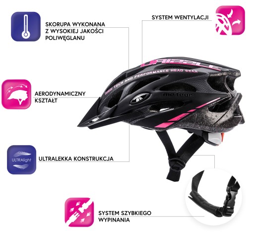 KASK ROWEROWY REGULOWANY METEOR MV29 DRIZZLE XL 61-63 czarno-różowy