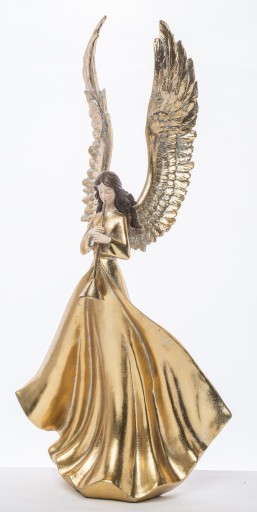Urocza figurka aniołka, doskonała ozdoba salonu, sypialni lub garderoby. Uwagę zwracają misternie wykonane detale figurki. Prezentowana figurka anioła przyjemnie ozdobi pomieszczenie.