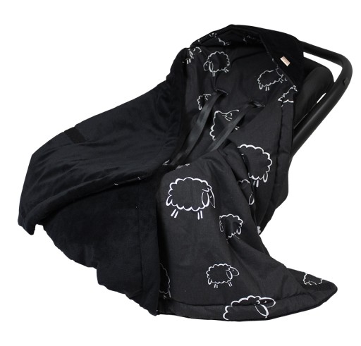 Otulacz/kocyk posiada otwory na pasy bezpieczeństwa 3 lub 5 punktowe (do wyboru). Nie pasuje do fotelika samochodowego z pasami zesplonymi.