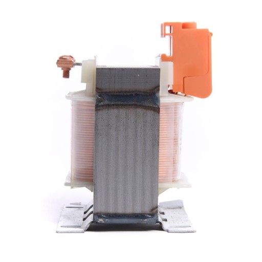 Transformator sieciowy z mocowaniem, wykonany z użyciem rdzenia kształtkowego EI bez przegrody.