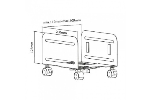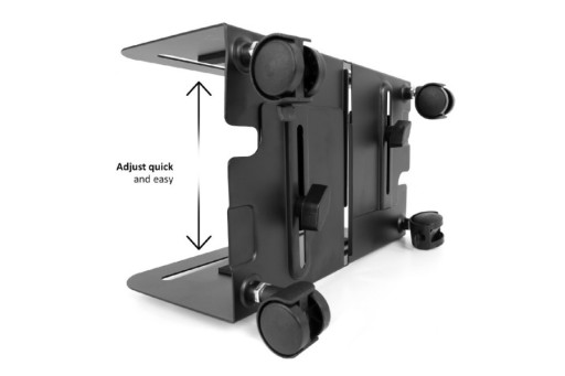 Dzięki regulacji szerokości w zakresie od 119 mm do 209 mm, wózek można dostosować do większości komputerów.