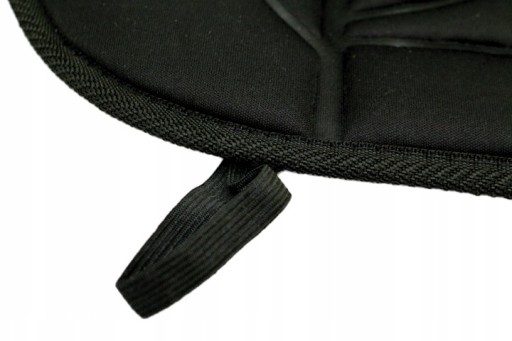 W dolnej części mata posiada dwie gumy z zaczepami, które można przymocować do fotela.