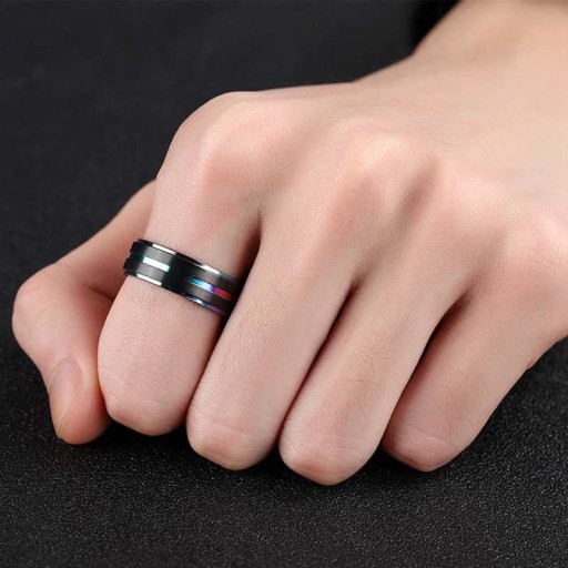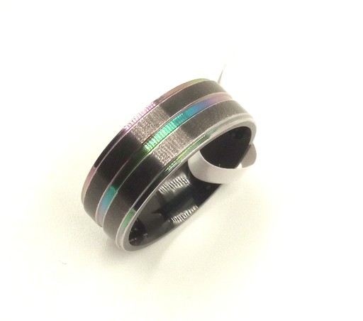 ОБРУЧАЛЬНОЕ КОЛЬЦО Черно-радужная печатка, нержавеющая сталь