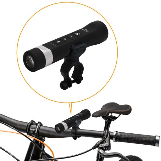 Umil swoją podróż słuchaniem ulubionych piosenek prosto z lampki rowerowej! Lampka jest wyposażona w głośnik o mocy 3W. Muzykę możesz przesłać bezprzewodowo ze smartfona (Bluetooth 4.2) lub z karty pamięci microSD (wbudowany czytnik kart pamięci).