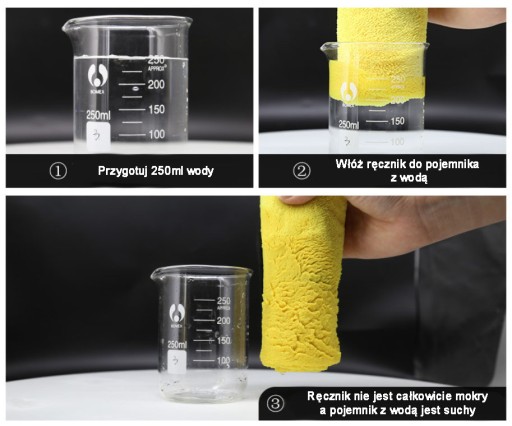 Ręcznik jest super chłonny i szybko wysusza powierzchnię samochodu po umyciu.