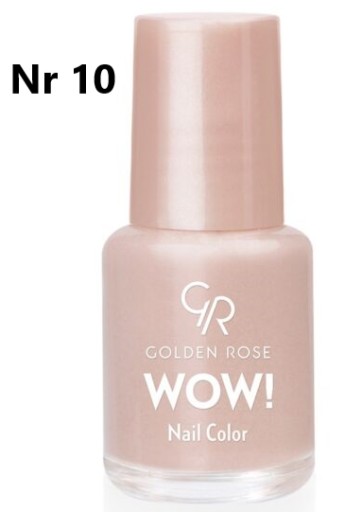 WOW! Nail Color marki Golden Rose. Lakiery do paznokci. Posiada długotrwałą formułę, pozwalającą cieszyć się wyjątkowym manicure przez długi czas. Jednorodna konsystencja daje równomierne pokrycie bez prześwitów. Poręczne opakowanie wyposażono w elastyczny pędzel, który zapewnia wygodną i precyzyjną aplikację. Produkt dostępny w wielu wersjach kolorystycznych. Posiada długotrwałą formułę. Lakier dostępny o pojemności 6 ml.