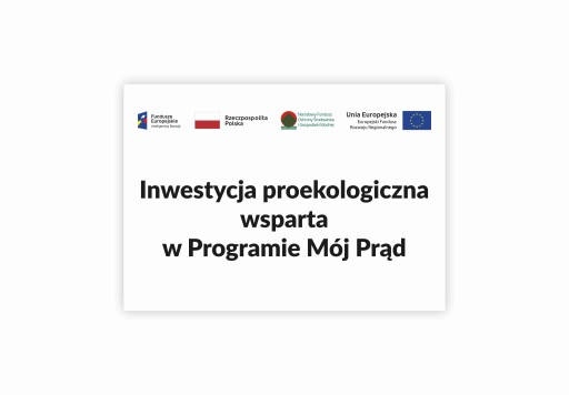 TABLICZKA PCV ZADRUKOWNA METODĄ UV " Inwestycja proekologiczna wsparta w Programie Mój Prąd A3 " 42 x 29,7 cm ZGODNA Z WYTYCZNYMI