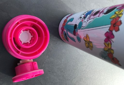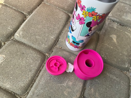 Otwierany i zamykany na przycisk - po zamknięciu kubek jest szczelny, nawet po przewróceniu.