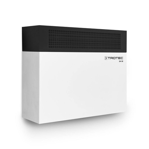 DH 30 to profesjonalny osuszacz przemysłowy wyprodukowany przez Trotec, zaprojektowany i wykonany w Niemczech zgodnie z najwyższymi standardami jakości. Dzięki zapewniającej dużą moc i niewymagającej wielu zabiegów konserwatorskich konstrukcji jest odpowiedni do w pełni automatycznego, sterowanego higrostatem osuszania w trybie ciągłym.