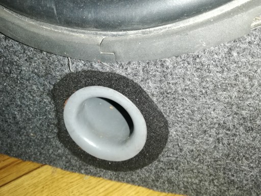 Delikatne uszkodzenie tapicerki widoczne na zdjęciu.