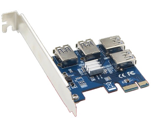 - Adapter dzięki któremu z jednego gniazda PCI-E, mogą korzystać 4 karty graficzne połączone przez risery PCI-e