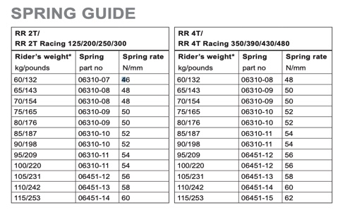 Sprężynę należy dobrać według załączonej tabeli.