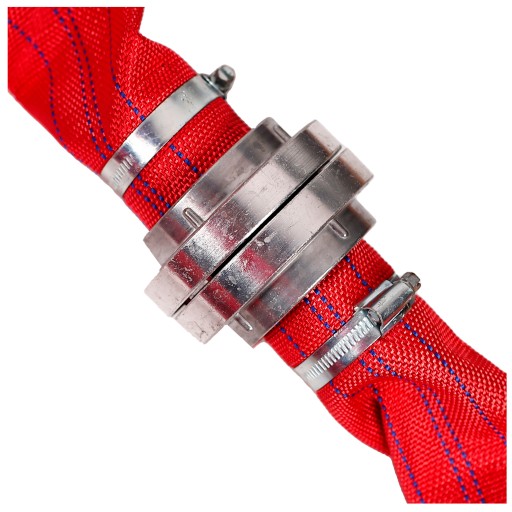 W naszej ofercie znajduje się wąż strażacki 2'' (cale) 52mm z zamontowanymi szybkozłączkami i skręcony opaskami zaciskowymi gotowy do pracy.