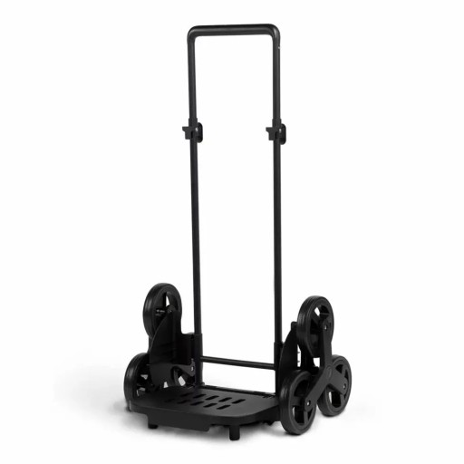 Wózek posiada system potrójnych kółek ułatwiających pokonywanie schodów i krawężników. Opona zrobiona jest z lekkiej i odpornej na ścieranie pianki EVA. Kółka dodatkowo mona zdemontować żeby zmniejszyć gabaryt np do przewozu w samochodzie. Wózek posiada specjalny system „Easy-Click” do łatwego wyjmowania worka.