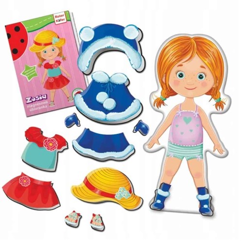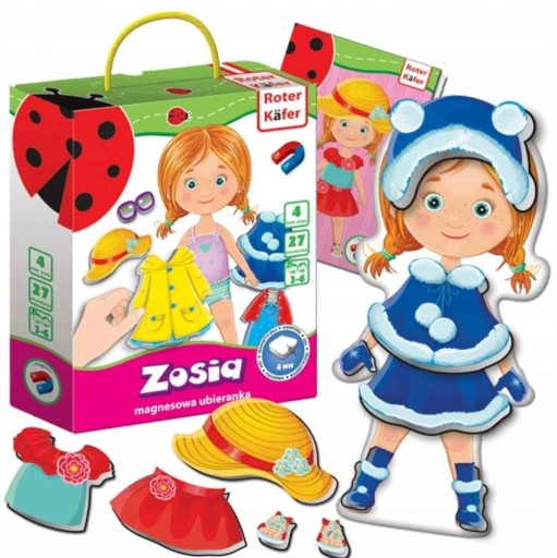 Ta magnesowa ubieranaka ma inspirujący wpływ na rozwój wyobraźni dziecka i zaprasza do wyruszenia wraz z Zosią na spacer. Zadaniem dziecka jest odpowiednie dobranie ubranek do aktualnej pory roku. Przez zabawę dziecko nauczy się jak ubierać się odpowiednio do pogody. Gra - ubieranka pomoże dziecku zrozumieć, co ubiera się latem, jesienią, zimą i wiosną. W książeczce - instrukcji znajdziecie wskazówkę, jak łączyć części garderoby i której porze roku odpowiadają. Ale to jeszcze nie wszystko! Na stronach książeczki znajdują się także tematyczne zadania dla rozwoju uwagi, pamięci i logicznego myślenia.