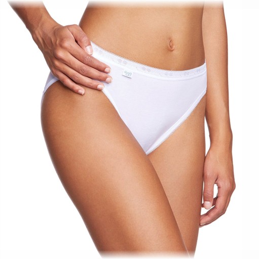 Sloggi Basic+ Tai to majtki damskie o klasycznym kroju z delikatnie podniesionym stanem, mocniejszym wycięciem z przodu oraz pełniejszymi pośladkami, dzięki czemu jednocześnie optycznie wydłużając nogi i wysmuklając dolne partie brzucha
