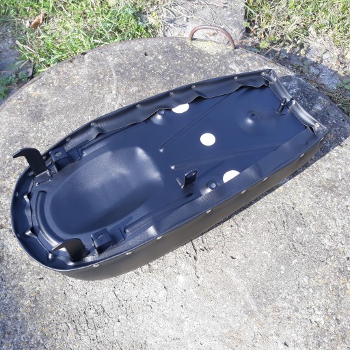 Kompletne nowe siedzenie do motocykla WSK 125 i 175 nowszego typy (pełna blacha). Siedzenie wykonane ze skaju w kolorze całe czarne matowe przeszywane. Gąbka cięta dobrej jakości. Twardość podobna do oryginału. Na innych aukcjach całe siodła i pokrowce w innych kolorach.