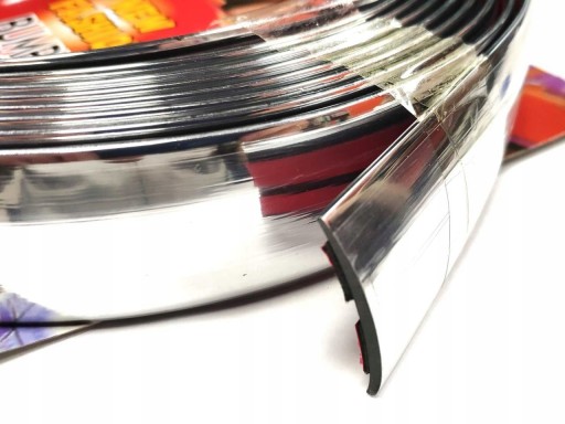 Listwa chromowana posiada taśmę z mocnym klejem samoprzylepnym który jest odporny na czynniki atmosferyczne.
