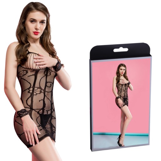 Prześwitujące body w formie seksownej koszulki - sukienki mini, która tylko delikatnie zakrywa kobiece walory. Body wykonane zostało z półprzeźroczystego materiału. Elastyczna mini sukienka idealnie opina ciało, podkreślając linię i dodając erotyzmu poprzez eksponowanie miejsc intymnych. Body łączy w sobie elementy, które oddziaływają na erotyczną wyobraźnię mężczyzn. Sukienka posiada bardzo seksowny fason, podniecające prześwity, rozciągliwy materiał. W tej bieliźnie erotycznej każda Pani poczuje się zmysłowo i ponętnie.