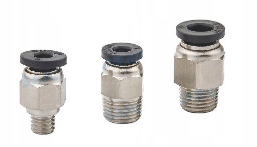 Oferowana złączka o symbolu: PC4-01, inaczej określana symbolem: PC4-M10 dedykowana jest do drukarek 3D, na filament 1,75 mm. Jest przelotowa (umożliwia umieszczenie rurki teflonowej przelotowo), nie posiada blokującego teflon kołnierza oporowego (grafika ostatnia).