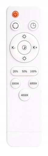 Plafon z pilotem za pomocą którego można płynnie zmienić barwę świecenia od ciepłej białej po zimno białą (3000K-6500K) oraz wybrać ilość światła, plafon z możliwością ściemniania.