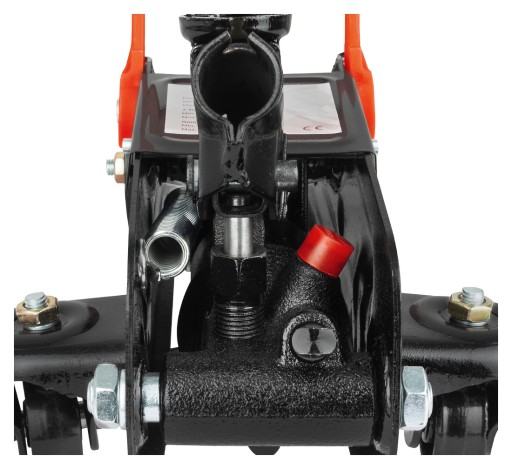 Dzięki odpowiednio zaprojektowanym kółkom, ten podnośnik może być łatwo ustawiony w dowolnym punkcie pod samochodem. Ich konstrukcja znacznie ułatwia manewrowanie tym narzędziem. Ich duża średnica sprawia, że z łatwością będziesz sterować podnośnikiem nawet na chropowatych powierzchniach.