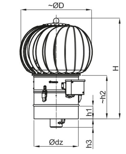 Obrotowa nasada kominowa TURBOWENT HYBRYDOWY PLUS jest urządzeniem dynamicznie wykorzystującym siłę wiatru do wspomagania ciągu kominowego, dodatkowo wyposażonym w silnik bezszczotkowy małej mocy do jego skutecznej stabilizacji.