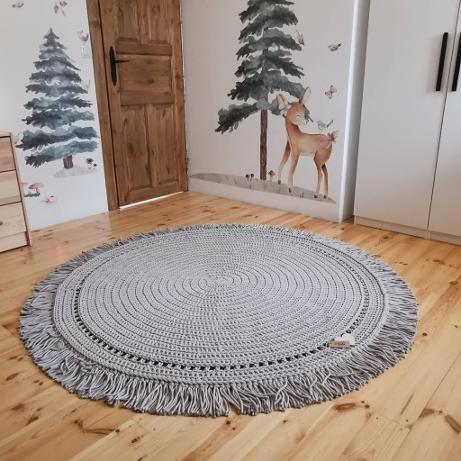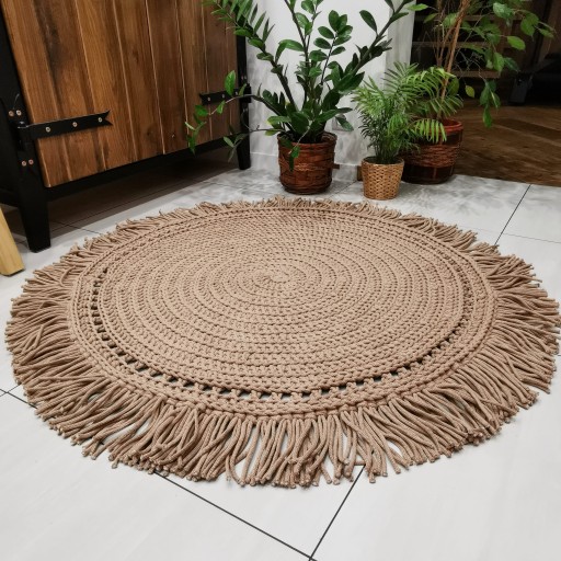 Ręcznie wykonany okrągły dywan w stylu BOHO z grubego sznurka bawełnianego o średnicy 5mm.