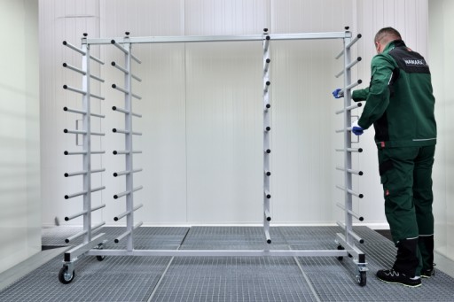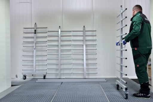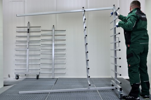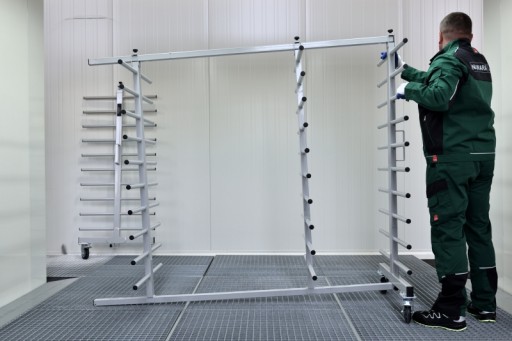 Mobilne wózki lakiernicze naszej produkcją charakteryzuje się sprawdzoną mocną i stabilną konstrukcją, posiadającą łatwą i szybką regulację rozstawu ramion.