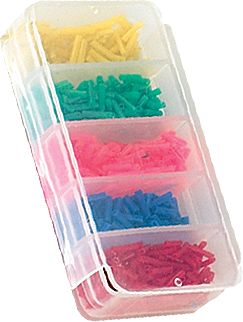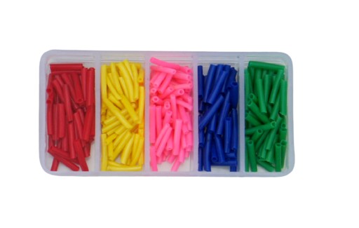 Pudełko posiada 5 przegród każdy rozmiar wężyków w osobnej komorze.