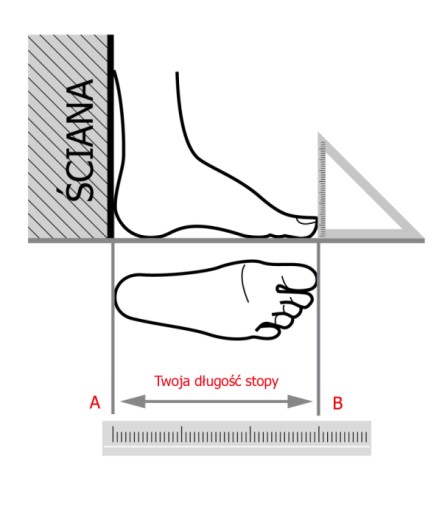 1. Aby prawidłowo dobrać rozmiar obuwia, należy zmierzyć długość swojej stopy. Sugeruj się zawsze pomiarem większej stopy.