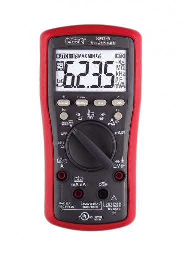 BM 235 jest miernikiem uniwersalnym z pomiarem TrueRMS, innowacyjnymi funkcjami VFD (pomiar ACV+Hz na wyjściach falowników) i AutoV ( pomiar napięć z autorozróżnianiem DCV/ACV i pomiarem ze zmienną obniżoną impedancją). Zazwyczaj funkcje te są dostępne w droższych modelach. Wszystkie modele posiadają też funkcję EF-Detection do bezkontaktowego wykrywania napięć i mierzą prądy DC/AC od 600μA do 10A.