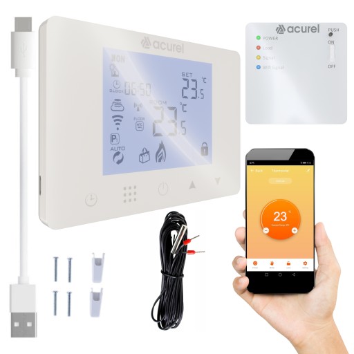 W przeciwieństwie do konwencjonalnych termostatów domowych, system termostatyczny Acurel HY09RF (AD116C) posiada oddzielną i połączoną bezprzewodowo jednostkę sterującą (nadajnik) oraz jednostkę przełączającą (odbiornik). Jednostka przełączająca służy do podłączania do np. folii grzewczych, mat grzewczych, a przenośna jednostka sterująca służy do obsługi i ustawiania temperatury.