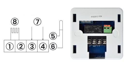 Regulator ma wbudowany czujnik temperatury powietrza i możliwość podłączenia zewnętrznego podłogowego czujnika temperatury.