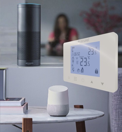 Dzięki czemu możemy wydawać rozkazy głosowe np. zmniejszenia temperatury w danym pomieszczeniu czy też zmienić tryb pracy termostatu.