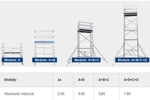 - Do Eco-Line ® dostępne są 4 różne moduły umożliwiające uzyskanie różnych wysokości roboczych max 7,8 m.